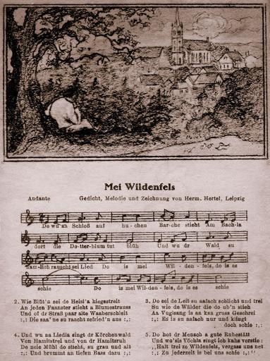 | Keywords: 000010 Mei Wildenfels.jpg de Das Wildenfelser Heimatlied Abbildung des Originals das ursprünglich im ehemaligen Heimatmuseum Wildenfels ausgestellt war 2014-03-02 18 59 35 Erbslöh-Archiv Familienverband Julius Erbslöh Wuppertal Hermann Hertel 1891 Wildenfels - 1969 Leipzig Nachlassverwaltung Erben Hermann Hertel Andreas Erbslöh cc-zero Wildenfels Postcards with lyrics Erbslöh-Archiv Uploaded with UploadWizard | ||||