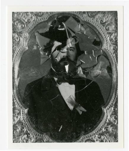 Keywords: unidentified man unidentifiedman photo border surreal Portrait photograph, broken ambrotype Portrait photograph, broken ambrotype