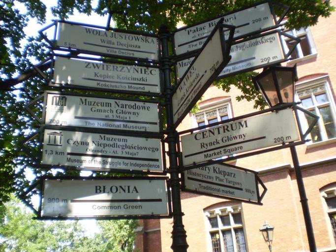 Keywords: 0020Kraków.JPG Planty in Kraków Poland Drogowskaz miejski na Plantach w Krakowie Own 2007-07 Rj1979 Planty Fingerposts in Poland