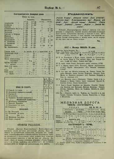 Keywords: january 1887 январь oldnewspaper электроннаябиблиотекабелинки фондыбелинки стараягазета екатеринбургскаянеделя историяжурналистики