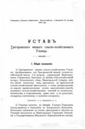 | Keywords: 002 Ustav Grigorievskogo Uchilischa Str 01.jpg ru Устав Г иго ьевского сельскохозяйственного училища С 1 Уставъ Г иго ьевскаго низшаго сельско-хозяйственнаго Училища ижего одскаго Губе нскаго Земства имени Гене алъ- аіо а ГРИГОРЬЕВА на Обуховскомъ Земскомъ хуто ѣ въ Лукояновскомъ уѣздѣ Почтовый ад есъ ст Ташинъ заводъ ижего губ - ижній- овго одъ Типог афія К Филипповой 1911 - 20 с ижего одское Губе нское Земство 1911 PD-old-70 Charter of Grigorievsky agricultural school in Nizhny Novgorod province |