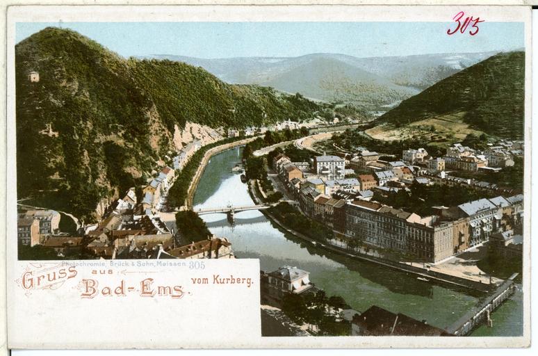 | Keywords: 00305-Bad Ems-1898-total-Brück & Sohn Kunstverlag.jpg Bad Ems; total Brück Sohn 00305 yes 1898 own Brück Sohn Kunstverlag Meißen cc-zero Bridges in Bad Ems Lahn Buildings in Bad Ems Colored postcards of Germany 1898 postcards of Rhineland-Palatinate 1898 postcards published by Brück Sohn Postcards of Bad Ems published by Brück Sohn Images from Brück Sohn Uploaded with VicuñaUploader | ||||