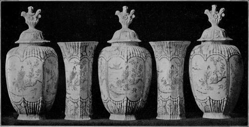 | Keywords: 0093 Large Cabinet Set.jpg Delft century 18 earthenware cm 47 Unknown object history between 1907-05-13 1907-05-15 sale F W Ross La Haye A Durand Paris Successions de Hoorn de Groningue Le trésor de la corporation des bouchers à Dordrecht provenant de M C BOSMAN van Oudkarspel De Brakke Grond Amsterdam 93 unknown ˜Grande garniture de trois potiches à couvercles et de deux cornets godronnée à huit pans superbe décor blue à figures de la manière chinoise en haut et en bas des médaillons à décor de fleurs Les couvercles surmontés du chien Fo entouré de fleurs Haut 47 cM Marque X Garniture de toute beauté Quelques restaurations ™ exhibition history credit line accession number J Schulman 1907 Collections F W Ross La Haye A Durand Paris Successions de Hoorn de Groningue Le trésor de la corporation des bouchers à Dordrecht provenant de M C BOSMAN van Oudkarspel Amsterdam s n pl IV Collections F W Ross La Haye A Durand Paris et al pl IV recto jpg Full image PD-old Collections F W Ross La Haye A Durand Paris et al Lot0093 Delftware |