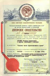 Keywords: Свидетельство 010005.jpg ru Авто ское свидетельство Ходовая часть г узоподъемного к ана 1978 2014-09-10 01 51 30 own Dergalev PD-RU-exempt Insignia cc-by-sa-4 0 Invention author s certificate