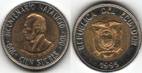 Keywords: 0100+Sucres+Ecuador+1995.jpg Ecuadorian 100 Sucres coin own Scan 9 7 2006 Scanned by Ma_xyz Public Domain Coins of Ecuador