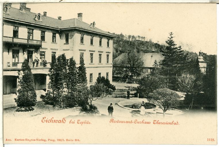 | Keywords: 01118-Eichwald-1899-Restaurant - Kurhaus Theresienbad-Brück & Sohn Kunstverlag.jpg Eichwald; Restaurant - Kurhaus Theresienbad Brück Sohn 01118 yes 1899 own Brück Sohn Kunstverlag Meißen cc-zero Restaurants in Ústí nad Labem Region Spa buildings in the Czech Republic Dubí 1899 postcards of Ústí nad Labem Region 1899 postcards published by Brück Sohn Postcards of Dubí published by Brück Sohn Images from Brück Sohn Uploaded with VicuñaUploader | ||||