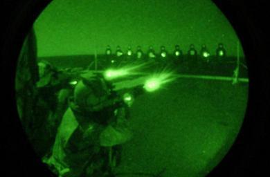| Keywords: 011207-N-2383B-504 Fire Fight.jpg en 011207-N-2383B-504 At sea aboard USS Bataan LHD 5 Dec 7 2001-- U S Marines of the 26th Marine Expeditionary Unit Special Operations Capable conduct a small arms live-fire exercise on the flight deck aboard USS Bataan The Bataan Amphibious Ready Group is deployed in support of Operation Enduring Freedom U S Navy photo by Chief Photographer's Mate Johnny Bivera RELEASED 2001-12-07 011207-N-2383B-504 Navy http //www navy mil/view_image asp id 212 U S Navy photo by Chief Photographer's Mate Johnny Bivera PD-USGov-Military-Navy Aboard USS Bataan LHD-5 Weapon training in the United States Marine Corps Shooting Military activities at night Night vision photographs War in Afghanistan in 2001 United States Marine Corps in the War in Afghanistan 2001-present 26th Marine Expeditionary Unit War in Afghanistan 2001-present related operations outside of Afghanistan Photographs taken on 2001-12-07 Military people in 2001 December 2001 in the United States People of the United States in 2001 |