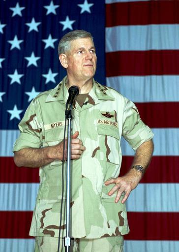 | Keywords: 011221-N-1328C-503 JCS Visits Theodore Roosevelt.jpg en 011221-N-1328C-503 At sea aboard USS Theodore Roosevelt CVN 71 Dec 21 2001 - Chairman of the Joint Chief's of Staff General Richard B Myers thanks the crew of USS Theodore Roosevelt for all their efforts in fighting terrorism during a brief visit to the area Theodore Roosevelt and its embarked carrier air wing are conducting missions in support of Operation Enduring Freedom U S Navy Photo by Chief Photographer s Mate Eric A Clement Released 2001-12-21 011221-N-1328C-503 Navy http //www navy mil/view_image asp id 288 U S Navy Photo by Chief Photographer s Mate Eric A Clement PD-USGov-Military-Navy December 2001 photographs 21 December People with U S flags in background December 2001 in the United States Desert Camouflage Uniform in 2001 Military people with microphones Left hand on hip Men looking right Military people in 2001 Military people with a flag of the United States People of the United States in 2001 Portrait photographs of standing men Richard Myers Military people on duty USS Theodore Roosevelt CVN-71 hangar deck |