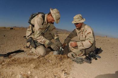 | Keywords: 011223-N-2383B-506 EOD at work in Afghanistan.jpg en 011223-N-2383B-506 Kandahar Afghanistan Dec 23 2001 -- U S Navy Lt Mike Runkle of Virginia Beach Va assigned to Explosive Ordnance Disposal Mobile Unit Two Detachment-18 left and U S Army Staff Sgt Ben Walker right prepare charges to blow up stockpiled ordnance left behind by fleeing Al Qaida troops Lt Runkle leads the Joint Explosive Ordnance Disposal Detachment at a forward operating base in Kandahar Afghanistan U S military EOD personnel are conducting missions in support of Operation Enduring Freedom U S Navy photo by Chief Photographer's Mate Johnny Bivera Released 2001-12-23 011223-N-2383B-506 Navy http //www navy mil/view_image asp id 301 U S Navy photo by Chief Photographer's Mate Johnny Bivera PD-USGov-Military-Navy United States Army in the War in Afghanistan 2001-present Explosive Ordnance Disposal Mobile Unit 2 War in Afghanistan in 2001 United States Navy in the War in Afghanistan 2001-present Male soldiers Boonie hats Military people in 2001 December 2001 in Afghanistan People of the United States in 2001 Photographs taken on 2001-12-23 Desert Camouflage Uniform in 2001 Men at work Military people on duty |