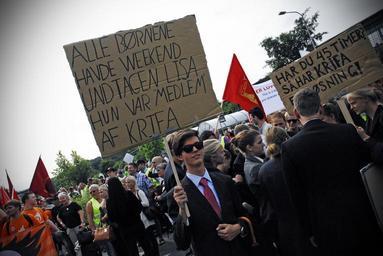 Keywords: trade union vejle denmark tradeunion 3f solidarity red flag labourmovement social dumping socialdumping wages krifa gul people crowd Blokade af Resteaurant Vejledgården 2012 Blokade af Resteaurant Vejledgården 2012