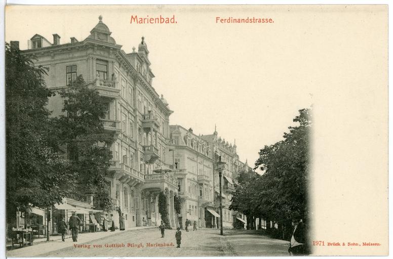 | Keywords: 01971-Marienbad-1901-Ferdinandstraße-Brück & Sohn Kunstverlag.jpg Marienbad; Ferdinandstraße Brück Sohn 01971 yes 1901 own Brück Sohn Kunstverlag Meißen cc-zero Buildings in Mariánské Lázně Street lights in the Czech Republic 1901 postcards of Karlovy Vary Region 1901 postcards published by Brück Sohn Postcards of Mariánské Lázně published by Brück Sohn Images from Brück Sohn Uploaded with VicuñaUploader | ||||