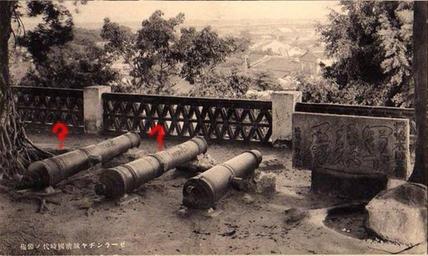 | Keywords: 安平古堡 大砲 柱子 01.jpg en scene in Anping Tainan before 1945 http //www twmemory org/wp-content/uploads/2015/10/1523772_727762057245142_798097723_o-923x1024 jpg taipics Bert Wang author other versions Custom license marker 2016 12 01 PD-China PD-1996 PD-Japan-oldphoto Anping Small Fort |