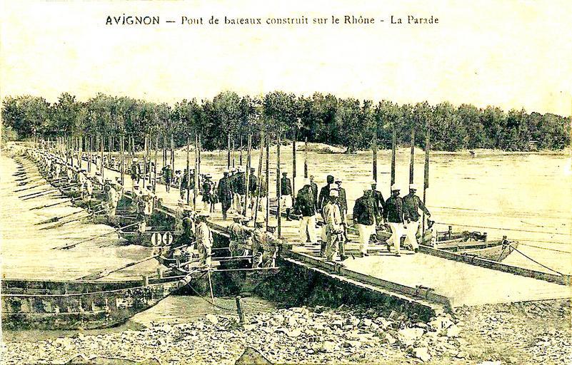 Keywords: 01 Avignon Pont du 7e génie sur le Rhône.jpg fr Pont des bateaux du 7e génie sur le Rhône 2011-02-02 Scan old postcard Unknown early XXe s PD-old Uploaded with UploadWizard Old postcard of Rhône in Avignon Military history of Avignon