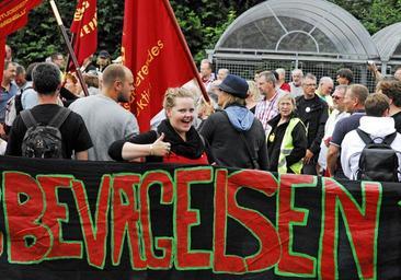 Keywords: trade union vejle denmark tradeunion 3f solidarity red flag labourmovement social dumping socialdumping wages outdoor Blokade af Resteaurant Vejledgården 2012 Blokade af Resteaurant Vejledgården 2012