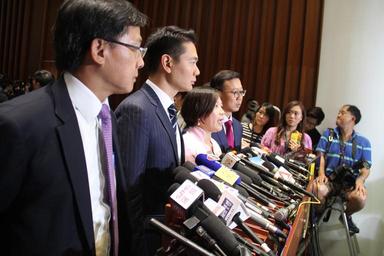 | Keywords: 香港本土議員宣誓風波上演政治對決大戲 03.jpg zh-tw 香港立法 10 26日上演驚人政治大戲(美 之音海彥拍 ) 親中建制派上 三製 立法 流 阻止 年新政梁頌恆和遊蕙禎再次宣誓,並政治施壓 迫立法 主席梁君彥改變自己先前裁定,宣布押後兩人宣誓後,10 26日的立法 大 成為外界 注的焦點 同聲譴責梁君彥讓政治凌駕法律的 建制派議員, 三上午組成人鏈,成功護 梁頌恆和遊蕙禎 入議事大廳要求宣誓,但 終梁君彥以無法恢復 議廳秩序為由宣布休 ,再次阻止兩人宣誓 2016-10-26 11 55 59 http //www voachinese com/a/localist-legislators-fail-to-swear-20161026/3566630 html 海彥 other versions Custom license marker 2016 11 06 PD-USGov-VOA Hong Kong LegCo members' oath-taking controversy | ||||