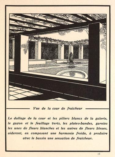 Keywords: Внутрішнє подвір’я. Білі колони галереї та плити мощення, зелене листя та газон, клумби з білими та синіми квітами справляють враження прохолоди. Водойма у центрі подвір’я підсилює це відчуття свіжості. Le nouveau jardin by Vera, André; Vera, Paul A Paris: Émile-Paul Éditeur, 1912 Сторінка книги на сайті Internet Archive: <a href="https://archive.org/details/nouveaujardin00Vera" rel="nofollow">archive.org/details/nouveaujardin00Vera</a> ----- <a href="http://veronica-decor.blogspot.com/" rel="nofollow">veronica-decor.blogspot.com/</a> <a href="https://www.facebook.com/veronica.ramm.9" rel="nofollow">www.facebook.com/veronica.ramm.9</a> france landscapedesign oldillustrations