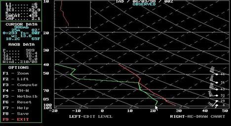 | Keywords: 03 June 1998 00z IAD Skew-T.jpg en Skew-T plot of an atmospheric profile at 00z on June 3 1998 around the time of the Frostburg Tornado Taken at IAD Dulles Airport by the NWS Sterling VA National Weather Service Sterling VA Dulles Airport NWS Sterling VA employees 1998-06-03 PD-USGov Tornadoes of 1998 Charts |