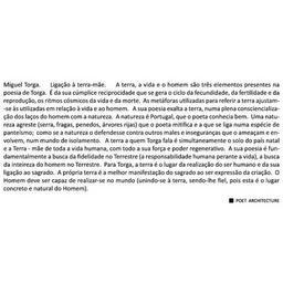 Keywords: 041_1 Pachamama e a ligação de Miguel Torga à natureza POET ARCHITECTURE POET ARCHITECTURE