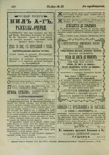 Екатеринбургская неделя. 1887. № 23, первое прибавление