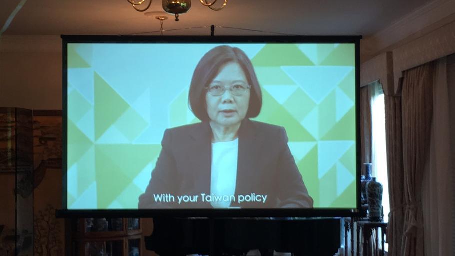 | Keywords: 台灣駐美代表處在雙橡園舉行慶祝蔡英文總統就職酒會 04.jpg zh-tw 總統當選人蔡英文對酒 賓客發表視訊講話 美 之音鐘辰芳拍 2016-05-20 http //www voachinese com/a/president-taiwan-reception-gallery-dc-20160519/3337897 html 鐘辰芳 other versions Custom license marker 2016 10 05 PD-USGov-VOA Tsai Ing-wen 2016 presidential inauguration |