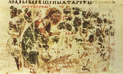 | Keywords: 04-manasses-chronicle.jpg   иниатю а 4 от  анасиевата летопис 14 век Създаването на Ева от  еб ото Адамово Miniature 4 from the Constantine Manasses Chronicle 14 century Creation of Eve from the Adam's rib Скани ана от книгата  иниатю и на  анасиевата летопис Иван Дуйчев Издателство Бълга ски художник София 1962 Scanned from book Miniatures from the Manasses Chronicle Ivan Duichev Bulgarski hudojnik Publishing house Sofia 1962 Original 14 century Original Constantine Manasses PD-old-100 Constantine Manasses Chronicle Creation of Eve Miniatures Creation in miniatures Miniatures |