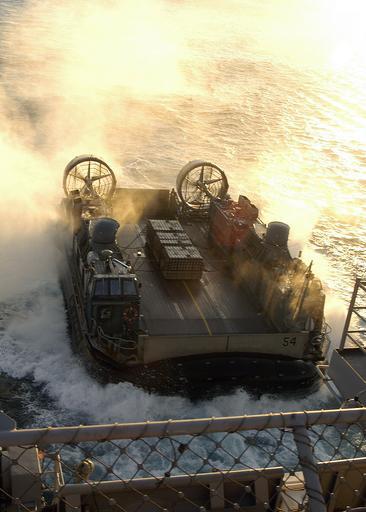 Keywords: lcac landing craft air cushion landingcraftaircushion acu-4 acu4 well deck welldeck outdoor 060117-N-1189B-070 Reykjavik, Iceland (October 17, 2006) ñ A Landing Craft Air Cushion (LCAC) from Assault Craft Unit 4 (ACU 4) enters the well deck of multipurpose amphibious assault ship USS Wasp (LHD 1) after conducting an early morning demonstration for Icelandís Viking Squad in Reykjavik, Iceland. Wasp recently finished a visit to Iceland after completing a two-month deployment to the Mediterranean Sea in support of Joint Task Force Lebanon. U. S. Navy photo by Mass Communication Specialist Third Class Zachary L. Borden (RELEASED) 060117-N-1189B-070 Reykjavik, Iceland (October 17, 2006) ñ A Landing Craft Air Cushion (LCAC) from Assault Craft Unit 4 (ACU 4) enters the well deck of multipurpose amphibious assault ship USS Wasp (LHD 1) after conducting an early morning demonstration for Icelandís Viking Squad in Reykjavik, Iceland. Wasp recently finished a visit to Iceland after completing a two-month deployment to the Mediterranean Sea in support of Joint Task Force Lebanon. U. S. Navy photo by Mass Communication Specialist Third Class Zachary L. Borden (RELEASED) 060117-N-1189B-070 Reykjavik, Iceland (October 17, 2006) ñ A Landing Craft Air Cushion (LCAC) from Assault Craft Unit 4 (ACU 4) enters the well deck of multipurpose amphibious assault ship USS Wasp (LHD 1) after conducting an early morning demonstration for Icelandís Viking Squad in Reykjavik, Iceland. Wasp recently finished a visit to Iceland after completing a two-month deployment to the Mediterranean Sea in support of Joint Task Force Lebanon. U. S. Navy photo by Mass Communication Specialist Third Class Zachary L. Borden (RELEASED)