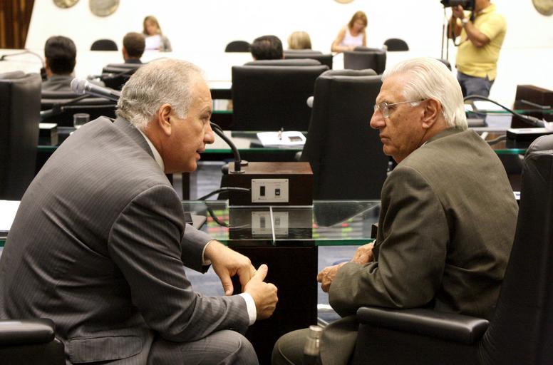 Keywords: Deputados pemedebistas Waldyr Pugliesi e Eduardo Cheida durante a primeira sessão ordinária de 2012. Foto: Nani Gois/Alep (crédito obrigatório) legislativo alep poderlegislativo eduardocheida waldyrpugliesi