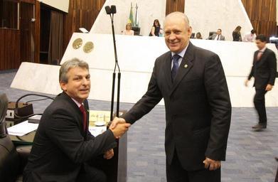Keywords: Líder do Governo na Assembleia, deputado Ademar Traiano (PSDB), cumprimenta o novo líder da Oposição, deputado Tadeu Veneri (PT). Foto: Nani Gois/Alep (crédito obrigatório) tadeuveneri ademartraiano
