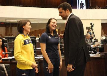 | Keywords: indoor Deputado Pedro Lupion (DEM) parabeniza a ginasta paranaense Angélica Kvieczynski (azul) e sua treinadora e técnica da seleção brasileira de ginástica rítmica, Anita Klemann. Angélica conquistou quatro medalhas nos Jogos Pan-Americanos de Guadalajara 2011. Leia mais: www.alep.pr.gov.br/imprensa/noticias/noticia/20792/menina... Foto: Nani Gois/Alep (crédito obrigatório) Deputado Pedro Lupion (DEM) parabeniza a ginasta paranaense Angélica Kvieczynski (azul) e sua treinadora e técnica da seleção brasileira de ginástica rítmica, Anita Klemann. Angélica conquistou quatro medalhas nos Jogos Pan-Americanos de Guadalajara 2011. Leia mais: www.alep.pr.gov.br/imprensa/noticias/noticia/20792/menina... Foto: Nani Gois/Alep (crédito obrigatório) |