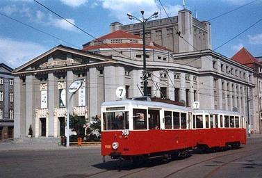 | Keywords: 088 Silesian Interurbans, museum car, Katowice.jpg Museum n Katowice Poland Konstal N+4ND tram 1100 English Wikipedia creation date unknown uploaded to English Wikipedia on 9 August 2005 English wikipedia user Wilq Wilq Konstal N in Katowice Silesian Theatre |