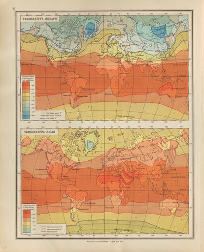 | Keywords: 08 (температуры).jpg ru Геог афический атлас для 5-го и 6-го классов с едней школы 1941 Геог афический атлас для 5-го и 6-го классов с едней школы 1941 Главное Уп авление Геодезии и Ка тог афии п и С К СССР Описание Раз аботан Цент альным аучно-Исследовательским Институтом Геодезии Аэ осъемки и Ка тог афии ГУГК п и С К СССР п и участии учителей московских школ Составлен и офо млен аучно-Редакционной Ка тосоставительской Частью Главного Уп авления Геодезии и Ка тог афии п и С К СССР Подписано к печати с 9/I по 3/VI 1941 г Custom license marker 2012 10 06 PD-old Geographical Atlas for the 5-6 grades of secondary school 1941 Uploaded with UploadWizard |