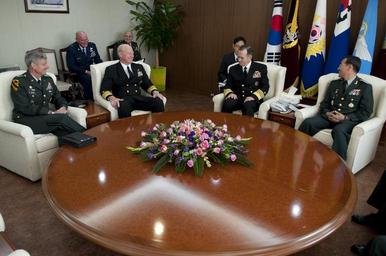 | Keywords: 091021-N-0696M-065 (4034793708).jpg From left U S Army Gen Walter 'skip Sharp commander of U S Forces Korea; Navy Adm Robert F Willard commander of U S Pacific Command; Chairman of the Joint Chiefs of Staff Navy Adm Mike Mullen and Chairman of the Joint Chiefs of Staff of the Republic of Korea Armed Forces Gen Lee Sang-Eui meet in Seoul South Korea Oct 21 2009 Mullen and Willard are visiting Seoul for the annual Military Committee Meetings between South Korea and the United States DoD photo by Mass Communication Specialist 1st Class Chad J McNeeley U S Navy/Released https //www flickr com/photos/39955793 N07/4034793708/ 091021-N-0696M-065 2009-10-21 09 30 https //www flickr com/people/39955793 N07 U S Department of Defense Current Photos PD-USGov-Military-Navy U S Department of Defense Current Photos https //flickr com/photos/39955793 N07/4034793708 2016-11-27 20 14 37 United States Government Work Robert Willard Michael G Mullen in 2009 Change of command Gates Seoul Pacific Ocean United States Pacific Command United States Navy Files from Flickr with bad file names Files uploaded by Reguyla |