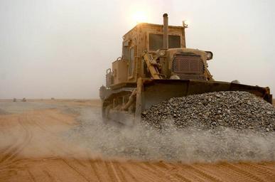 | Keywords: 091208-N-4440L-175.jpg en 091208-N-4440L-175 HELMAND PROVINCE Afghanistan Dec 8 2009 Equipment operators assigned to Naval Mobile Construction Battalion NMCB 74 use up-armored bulldozers and rollers to spread and roll gravel at a convoy route development project NMCB-74 has been charged with improving key convoy routes in Helmand Province Afghanistan 091208-N-4440L-175 Navy http //www navy mil/view_image asp id 79575 Mass Communication Specialist 2nd Class Michael Lindsey 2009-12-08 PD-USGov-Military-Navy Roadworks in Afghanistan Vehicles in the War in Afghanistan 2001-present United States Navy in Helmand Province Naval Mobile Construction Battalion 74 Military bulldozers Photos taken with Nikon D2H |
