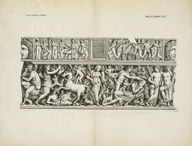 Keywords: ^^091,Bas-relief de Sarcophage^^093, (Atlas des Monuments mythologiques t. II, pl. 3. 4.) - Fonds Ancely - B315556101 A DUMEGE 036.jpg Texte incomplet des dernières pages La plupart des lithographies ont été tirées par les ateliers de Raynaud frères d'après A Du Mège Quelques unes ont été dessinées et lithographiées par Charles Gall Bonnet E Binet Durand M Pomier P Lacour G Chariol Les planches sont numérotées mais plusieurs manquent sur les 49 annoncées pl 1 6 13 18 21 22 23 24 25 26 27 28 30 31 32 33 38 40 il semblent que ces planches n'aient jamais été publiées voir note p 9 du texte - Les 4 dernières planches sont extraites du tome II de l'Atlas de l'Archéologie Pyrénéenne Monuments mythologiques pl 1 à 6 Pièces jointes couvertures papier de différentes livraisons Ancely René 1876 - 1966 Possesseur fre public domain domaine public B315556101_A_DUMEGE_1_036 jpg image/jpeg 1 pl lithogr ; 64 cm Gall Charles 18 -18 Illustrateur Bonnet Illustrateur Durand Illustrateur Lacour P Illustrateur Chariol G Illustrateur Binet E Illustrateur http //numerique bibliotheque toulouse fr/collect/general/index/assoc//ark /74899/B315556101_A_DUMEGE_036 dir/B315556101_A_DUMEGE_1_036 jpg Bibliothèque municipale de Toulouse A-DUMEGE 28 Creator Alexandre Du Mège http //catalogues toulouse fr/web2/tramp2 exe/do_keyword_search/log_in setting_key BMT1 servers 1home query p000391 Carte du Royaume et du duché de Septimanie n° 2 Abbaye de la Grasse - Tolosa Vignette tirée du second livre de l'histoire manuscrite de la ville de Tolosa Archives de l'hotel de Ville 16e siècle - Dame Carcas Figure en pierre placée sur un Cippe en dehors de la Porte Narbonnaise 16e siècle n° 3 Ruines du Château de Beaucaire - Carcassonne murs anciens de la Cité t I n° 4 Fragment présumé du tombeau de Simon de Montfort - Bataille de Muret - Miracle de Fangeaux i e Fanjeaux t I n° 5 Portail de Maguelonne sic t I n° 7 Abbaye de Gellone ou de St Guilhem du désert t I n° 8 Cathédrale Ste Cécile d'Albi Grand escalier t I n° 9 Cathédrale Ste Cécile d'Albi Vue générale intérieure t I n° 10 Fresque de l'église Ste Cécile d'Alby Le cardinal Joannes Jofredus et ses deux frères - Croix d'Armagnac t I n° 11 Détail d'une des portes latérales de St Gilles - Façade de St Gilles t I n° 12 Croquis de l'une des mosaèiques découvertes par MM J Soulages et Escudier dans le lieu de Silva Agra Saint-Rustice à plus de vingt kilomètres de Toulouse t I n° 14 Partie des ruines de l'église St Etienne d'Agen - Ruines du Château de Nérac t I n° 15 Palais Tutèle d'après une gravure sur bois publiée à Bordeaux en 1565 t I n° 17 Monuments sépulchraux des Samatan descendants des premiers comtes de Comminges t I n° 19 Un des plus beaux vitraux de la cathédrale d'Auch dans la chapelle du Purgatoire t I t I n° 20 Voeu fait par le roi Charles VI dans la forêt de Bouconne Etant accompagné du duc de Touraine frère du roi du duc de Bourbon de Pierre de Navarre comte d'Evreux d'Henri de Bar de Philippe d'Artois comte d'Eu d'Olivier de Clisson connétable de France et d'Enguerrand sire de Couci D'après une étude de M Pomier t I n° 29 Entrée du Dauphin fils de Charles VII depuis Louis XI dans Toulouse en 1443 vignette calquée dans les archives de Toulouse t I n° 34 Entrée du Dauphin fils de François 1er dans Toulouse en 1533 calque d'une vignette des annales manuscrites de la ville t I n° 35 Entrée de la Reine de France femme de François 1er dans Toulouse en 1533 vignette calquée dans les archives de la ville t I n° 36 Entrée du roi Louis XIV dans Toulouse en 1659 calque d'une vignette conservée dans les archives de la ville t I n° 37 Rétablissement du Parlement à Toulouse en 1469 d'après la demande de Mr Lebrun Juge-Mage de cette ville t I n° 39 Bas-reliefs de l'obélisque de Port-Vendres La servitude abolie La marine relevée L'indépendance de l'Amérique La liberté du commerce t I n° 41 Cathédrale Saint Bertrand de Comminges boisieries du déambulatoire t I n° 46 Bas-reliefs du tombeau de St Fort dont Le pape Clément V office à l'église St Seurin en 1306 la seconde année de son pontificat ; Vue de la chapelle souterraine et du tombeau de St Fort à Bordeaux t I n° 47 Sceaux des comtes souverains de Toulouse Tripoli et Poitiers t I n° 48 Monuments sépulcraux des comtes souverains de Toulouse dont Chapelle sépulcrale des Comtes de Toulouse telle qu'elle existait en 1615 t I n° 49 Autels votifs Atlas des Monuments mythologiques t II pl 1 2 Bas-reliefs de Sarcophage Atlas des Monuments mythologiques t II pl 5 Objets décorés Atlas des Monuments mythologiques t II pl 6 vignette http //numerique bibliotheque toulouse fr/collect/general/index/assoc//ark /74899/B315556101_A_DUMEGE_036 dir/B315556101_A_DUMEGE_1_036_thumb jpeg between 1858 1862 Bas-relief de Sarcophage Atlas des Monuments mythologiques t II pl 3 4 B315556101_A_DUMEGE_036 lithography - print Women in art Sculptures Alexandre Du Mège Tombs Men in art Tombs in Midi-Pyrénées Marble |