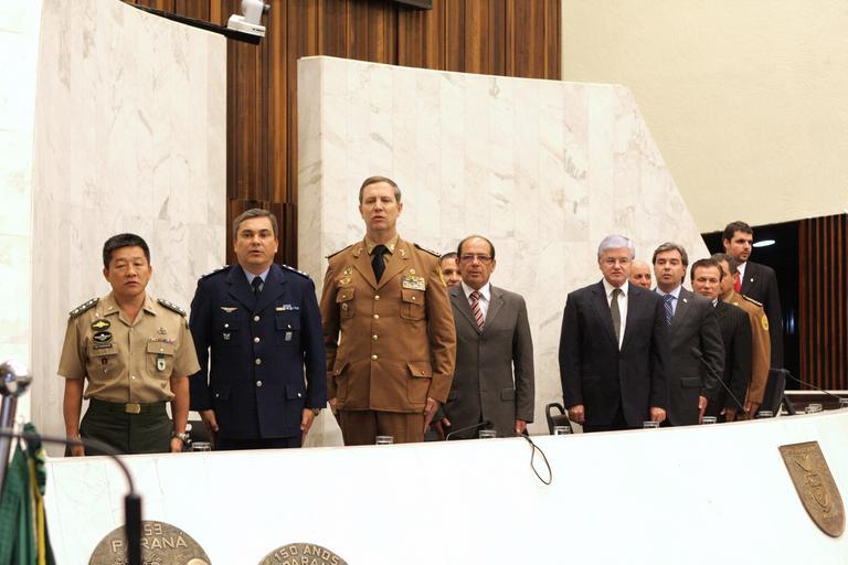 | Keywords: militares bombeiros corpo de bombeiros corpodebombeiros pedro lupion pedrolupion mauro moraes mauromoraes valdir rossoni valdirrossoni people groupshot Autoridades entoam o Hino Nacional na abertura da sessão solene comemorativa aos 100 anos do Corpo de Bombeiros. Foto: Nani Gois/Alep (crédito obrigatório) Autoridades entoam o Hino Nacional na abertura da sessão solene comemorativa aos 100 anos do Corpo de Bombeiros. Foto: Nani Gois/Alep (crédito obrigatório) | ||||