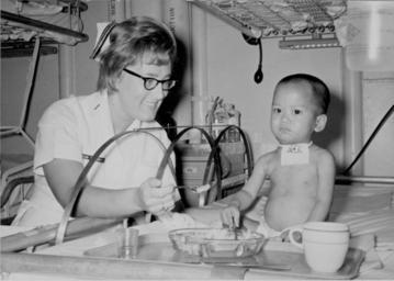 Keywords: history nurses hospital ship hospitalship uss sanctuary usssanctuary vietnam war vietnamwar blackandwhite people monochrome black and white 09-7971-87 Lieutenant Junior Grade K. Saunders, Nurse Corps, U.S. Navy, and "V.C. Charlie", an injured Vietnamese child. USS Sanctuary, Vietnam, 1967. [Pediatrics.] [Nurses. Nursing.] [Hospital ships. Transport of sick and wounded.] [Vietnam War.] [Scene.] Vietnam - Treating Civilians.1967; Photograph by Commander Fred Jackson, MC, USN. 09-7971-87 Lieutenant Junior Grade K. Saunders, Nurse Corps, U.S. Navy, and "V.C. Charlie", an injured Vietnamese child. USS Sanctuary, Vietnam, 1967. [Pediatrics.] [Nurses. Nursing.] [Hospital ships. Transport of sick and wounded.] [Vietnam War.] [Scene.] Vietnam - Treating Civilians.1967; Photograph by Commander Fred Jackson, MC, USN.