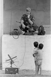 | Keywords: blackandwhite monochrome black and white 09-7993-2 Philippines. Filipino children watch as a soldier uses radio equipment to communicate with the medical civic action program (MEDCAP) headquarters at Fort Magsaysay during a 7th Fleet MEDCAP. [Humanitarian assistance.] [Scene.] MEDCAP 1989. 05/18/1989; SDAN: DN-SN-89-07473; Photographer PH1 Ted Salois. 09-7993-2 Philippines. Filipino children watch as a soldier uses radio equipment to communicate with the medical civic action program (MEDCAP) headquarters at Fort Magsaysay during a 7th Fleet MEDCAP. [Humanitarian assistance.] [Scene.] MEDCAP 1989. 05/18/1989; SDAN: DN-SN-89-07473; Photographer PH1 Ted Salois. |