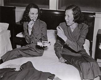 | Keywords: people indoor blackandwhite black and white 09-8156-18 The process of becoming acclimated to a new and brighter world, after 3 long years of deprivation, is a joy and a pleasure for the 11 gallant U.S. Navy Nurses, who were recently rescued from a Japanese internment camp near Manila. Weak in body, but high in spirits, the nurses are enjoying a few days well-deserved rest and recuperation in Hawaii, enroute to the States and home. Picture 2: Lounging about their room in their new gray uniforms, the first of this kind they had ever seen, are Margaret Nash of Wilkes-Barre, Pennsylvania (left) and Bertha Evans of Portland, Oregon (right). They are relishing a few pieces of candy, something they hadn't seen for a long time. [Portraits.] [Nurses. Nursing.] [Prisoners of war.] [World War 2.] [Scene.] Nurse Prisoners of War WWII Part I. 03/08/1945; CINCPAC 5399 09-8156-18 The process of becoming acclimated to a new and brighter world, after 3 long years of deprivation, is a joy and a pleasure for the 11 gallant U.S. Navy Nurses, who were recently rescued from a Japanese internment camp near Manila. Weak in body, but high in spirits, the nurses are enjoying a few days well-deserved rest and recuperation in Hawaii, enroute to the States and home. Picture 2: Lounging about their room in their new gray uniforms, the first of this kind they had ever seen, are Margaret Nash of Wilkes-Barre, Pennsylvania (left) and Bertha Evans of Portland, Oregon (right). They are relishing a few pieces of candy, something they hadn't seen for a long time. [Portraits.] [Nurses. Nursing.] [Prisoners of war.] [World War 2.] [Scene.] Nurse Prisoners of War WWII Part I. 03/08/1945; CINCPAC 5399 |