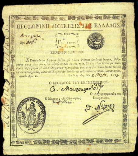 Keywords: 1000 grossia, Greek rebels goverment currency, 1822-1825.jpg el Ομόλογο ου χρησιμο οιήθηκε ως χαρτονόμισμα α ό την Προσωρινή Διοίκησης τῆς Ἐλλάδος κατά τη διάρκεια της ε ανάστασης του 1821 κατά της Οθωμανικής αυτοκρατορίας en Bond used as banknote by the Provisional Administration of Greece during the revolution of 1821 against the Ottoman Empire 1822 1825 http //www greekbanknotes com/greek-banknotes/national-finance-bank/ author other versions Custom license marker 2016 05 27 PD-old PD-1923 Provisional goverment of Greece 1822-1827 Banknotes with a face value of 1000 |