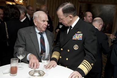 MAKE A MEME View Large Image 100130-N-0696M-092 (4322242347).jpg Chairman of the Joint Chiefs of Staff Navy Adm Mike Mullen speaks with retired Army Gen John W Vessey the 10th chairman of the joint chiefs of staff during the Pre-Alfalfa Club Luncheon at the Willard ...