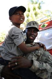 | Keywords: 100131-N-1810F-297 (4325782330).jpg U S Army Cpl Robinson Cadeus of the 45th Sustainment Brigade out of Schofield Barracks Hawaii holds his nine-year-old son in Delmas Haiti Jan 31 2010 The boy is a survivor of the 7 0-magnitude earthquake that struck Haiti Jan 12 2010 The Department of Defense and the U S Agency for International Development are in Haiti supporting Operation Unified Response a multinational joint-service operation to provide humanitarian assistance to Haitians affected by the earthquake DoD photo by Mass Communication Specialist 2nd Class Todd Frantom U S Navy/Released https //www flickr com/photos/39955793 N07/4325782330/ 100131-N-1810F-297 2010-02-01 15 28 https //www flickr com/people/39955793 N07 U S Department of Defense Current Photos PD-USGov-Military-Navy U S Department of Defense Current Photos https //flickr com/photos/39955793 N07/4325782330 2016-11-27 20 11 48 United States Government Work Schofield Barracks Delmas Haiti Port-au-Prince United States Agency for International Development United States Navy Files from Flickr with bad file names Files uploaded by Reguyla |