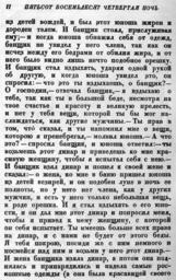 | Keywords: 1001 Nights-Russian censored version-page II.tif A censored portion with erotic content from the Russian translation of One Thousand and One Nights This text was omitted in the 5th volume of One Thousand and One Nights published by Academia publishing house Academia in 1933 night 584 Electronic copy 1933 Unknown folk tales PD-old-100 Text pages Censorship in the Soviet Union Arabian Nights Book censorship | ||||