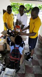 | Keywords: 100719-N-9643W-189 (4815885418).jpg U S Navy Yeoman 1st Class Raymond Jenkins left Logistics Specialist 1st Class Eric Jones and Seaman Adam Rogers give stuffed toys to a student from Escuela Las Pampas during a community relations event in Escuintla Guatemala July 19 2010 The service members are embarked aboard high-speed vessel Swift HSV-2 in support of Southern Partnership Station 2010 which is designed to promote information-sharing with navies coast guards and civilian services throughout the U S Southern Command areas of responsibility DoD photo by Mass Communication Specialist 1st Class Kim Williams U S Navy/Released https //www flickr com/photos/39955793 N07/4815885418/ 100719-N-9643W-189 2010-07-19 15 11 https //www flickr com/people/39955793 N07 U S Department of Defense Current Photos PD-USGov-Military-Navy U S Department of Defense Current Photos https //flickr com/photos/39955793 N07/4815885418 2016-11-27 19 16 50 United States Government Work Files from the U S Department of Defense Flickr stream United States Navy images from Guatemala Southern Partnership Station 2010 Files from Flickr with bad file names Files uploaded by Reguyla |