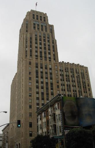 | Keywords: 100McAllister.jpg en The 28-story building at 100 McAllister in San Francisco California Originally designed in 1927 by Miller and Pflueger for the Methodist Church it was completed in 1930 by Lewis P Hobart and opened as the luxurious William Taylor Hotel and Temple Methodist Church In 1936 the hotel reopened under new ownership as the Empire Hotel which quickly became popular for its 24th-story Skyroom the first view lounge bar in San Francisco In World War II the building was acquired by the US government for use as offices by the Internal Revenue Service the Army's Ordnance Procurement department and the local draft board In 1978 the University of California's Hastings School of Law purchased the building to use as student apartments It also houses several political action groups and legal assistance organizations own Binksternet 2008-11-20 Public domain No restrictions on use McAllister Tower Timothy L Pflueger |