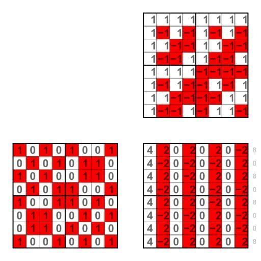 | Keywords: 1010 1001 Walsh spectrum.svg Walsh spectra of 3-ary Boolean functions like 1010 1001 The binary strings are multiplied with a Walsh matrix of order 8 The red squares in the background are additional information and show the product of the binary strings with a binary Walsh matrix own Lipedia Walsh spectrum of 3-ary Boolean functions |