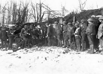 | Keywords: 104th battery.jpg AWM caption Western Front Belgium Messines Area Ploegsteert Drawing a hot tea ration at the Cookhouse of the 104th Battery of Australian Field Artillery in the Ploegsteert Sector in Belgium Left to right http //deepthought hass adfa edu au 8080/showPerson pid 29555 2426 Gunner Gnr E J Boyle unidentified unidentified http //deepthought hass adfa edu au 8080/showPerson pid 171896 28442 Gnr E L Lawrence http //deepthought hass adfa edu au 8080/showPerson pid 288242 11897 Gnr A Stewart http //deepthought hass adfa edu au 8080/showPerson pid 256559 31211 Gnr A K Roberts http //deepthought hass adfa edu au 8080/showPerson pid 123336 31131 Bombardier Bdr M T Hall partially obscured unidentified behind Hall http //deepthought hass adfa edu au 8080/showPerson pid 103968 10154 Bdr M Frawley beside Hall http //deepthought hass adfa edu au 8080/showPerson pid 317746 10303 Bdr H H Weeding next four men unidentified http //deepthought hass adfa edu au 8080/showPerson pid 264389 30003 Gnr D E J Ryan last three men unidentified Note the snow covered ground Original watermark info www awm gov au E01389 E01389 1917-12-26 photographer not identified Copyright expired - public domain PD-AustraliaGov Attribution metadata from licensed image World War I forces of Australia in Belgium Ploegsteert Black and white photographs of people |