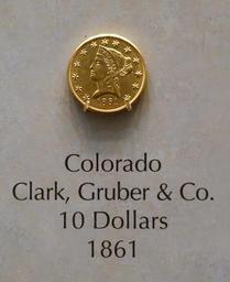 | Keywords: 10 Dollars, Clark, Gruber & Co., Colorado, 1861 - National Museum of American History - DSC00231.jpg en Exhibit in the National Museum of American History Washington DC USA Photography was permitted in the museum without restriction 2015-03-27 11 33 07 own Daderot other versions cc-zero Coins of the Pike's Peak Gold Rush in the National Museum of American History | ||||