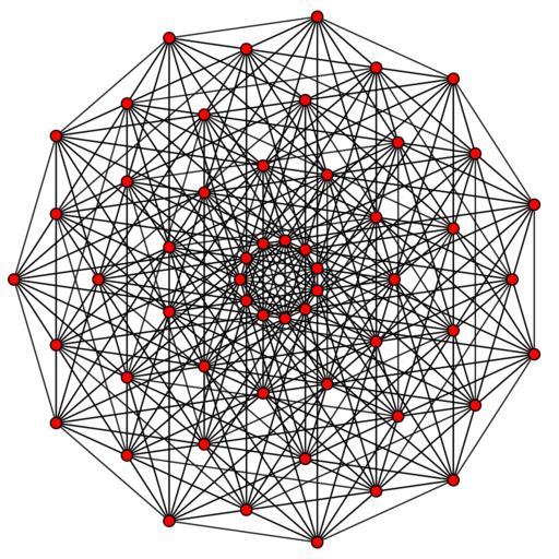 | Keywords: 10-simplex t1.svg en en 10-simplex family polytope graph in A10 Coxeter plane own Tomruen A string-art copy was made here in Oct 2010 http //topologia wordpress com/2010/10/10/algunos-politopos-con-hilo-tensado/dsc06228/ Set of colored Coxeter plane graphs; 55 vertices |