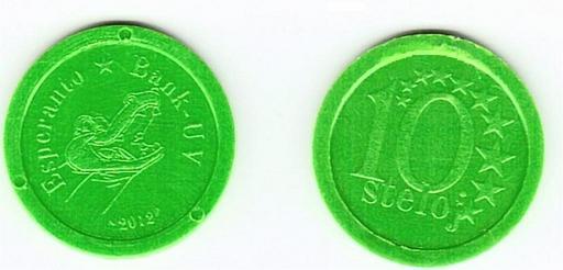 | Keywords: 10 steloj plastaj ambaŭflanke 01.JPG Steloj En la moneda aparece un cocodrilo debido a que es la moneda que más se usa en el bar por lo que luego de beber se empieza a crocodilar krokodili esto es hablar en el idioma nacional en lugar de en esperanto Stela plasta monero En la antaŭparto de la monero aperas krokodilo tio estas pro tio ke tiu ĉi monero estas la plej uzata en la drinkejo do post iom da tempo oni ekkrokodilas Stelo plastic coin In the front of the coin appears crocodile it is because this coin is the most used in the bar so after a while the persons start to krokodili speak in the national language ia Moneta de 10 steloj stellas In le adverso del moneta appare un crocodilo isto es proque iste moneta es le plus usate in le taverna e pro isto post un pauco de tempo le personas comencia a parlar in le lingua national krokodilo en esperanto 2013-09-22 13 34 36 own Remux cc-zero Uploaded with UploadWizard Stelo User Remux |