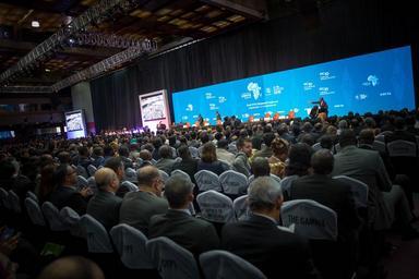 | Keywords: auditorium people crowd room hall KENYA, Nairobi: A photograph taken by Make It Kenya 15 December 2015, shows a general view of the opening of the Tenth World Trade Organisation (WTO) ministerial conference in the Kenyan capital, Nairobi; the first to be held on African soil. MAKE IT KENYA PHOTO / STUART PRICE. KENYA, Nairobi: A photograph taken by Make It Kenya 15 December 2015, shows a general view of the opening of the Tenth World Trade Organisation (WTO) ministerial conference in the Kenyan capital, Nairobi; the first to be held on African soil. MAKE IT KENYA PHOTO / STUART PRICE. |